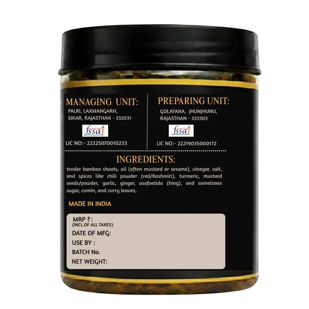 Exotic Bamboo Pickle delivers a crunchy texture with tangy, spicy, earthy notes. Richly flavored in mustard oil, it feels truly traditional and adds a bold, unforgettable taste to every bite.