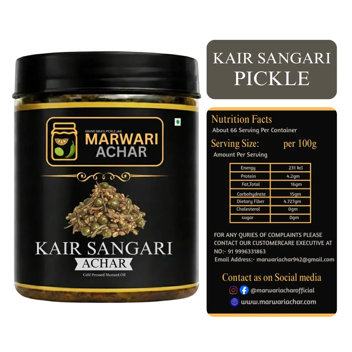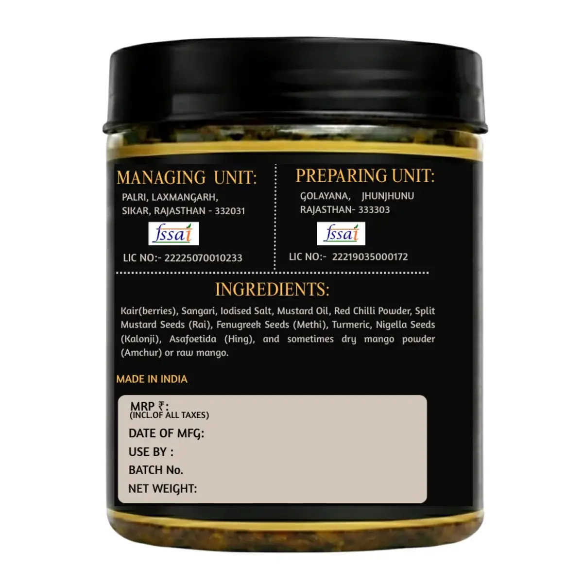 Kair Sangari Achar has a rich, earthy taste with bold spices and perfect tang. Truly authentic Rajasthani flavor that feels royal, homemade, and deeply satisfying with every bite.